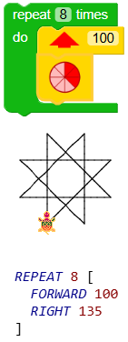 Logo Blocks uses the Logo programming language, designed at MIT specifically for children. Logo's iconic turtle draws on the screen, following directions you give it. You can even set its shape to look like Bee-Bot!
