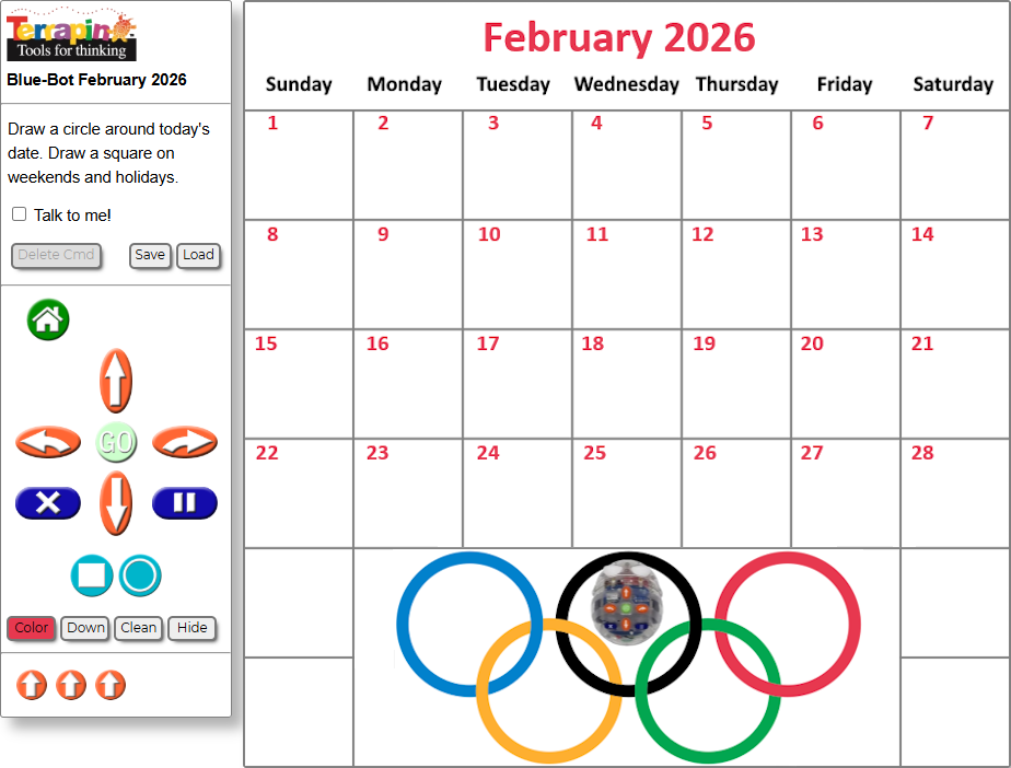 Students can navigate Blue-Bot to place a circle on today’s date.