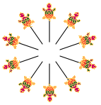 CTURTLES activates and makes visible the number of turtles specified by its input and arranges them in a circle in the center of the Graphics window.