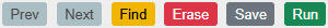 The buttons at the bottom of the Editor panel are handy for finding the next or previous occurrence of text, along with saving and erasing the contents of the Editor and running the code.