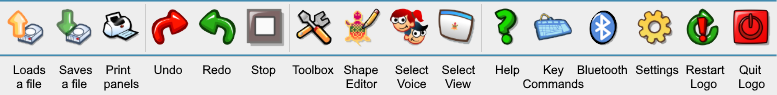 The Icon Bar is packed with essential functions for using Terrapin Logo. Below is a brief summary of what each icon does.