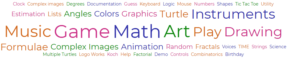 These pages contain an ever-growing list of Logo source code files. Many of these files demonstrate programming techniques or Terrapin Logo features. They include animations, musical pieces, games, fractals, and tutorials. You can download the source code to all programs and modify them to your liking. Visit the Logo Program Library.