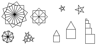 Try defining a procedure to draw a triangle — it’s just three lines and three turns. What about a star? Once you have your new commands defined, see what you can make. Here are some suggestions.