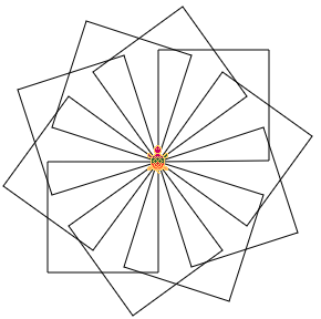 A square is four lines and four turns. But, what is four SQUARE commands and four turns? Type REPEAT 10 [SQUARE RT 36] and see what a star of squares looks like. Change the numbers for REPEAT and RIGHT to see what other interesting things you get. How about a pinwheel? How many squares are in that?