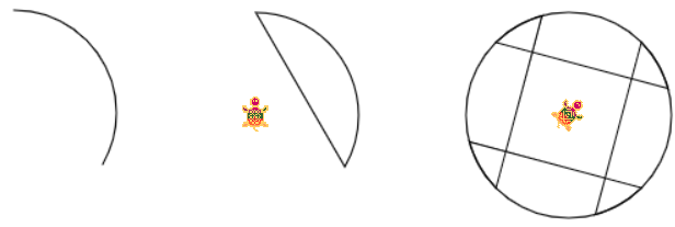 The shapes are drawn with the turtle in the center.