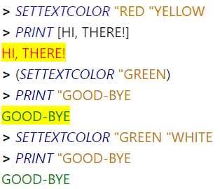 SETTEXTCOLOR allows you to set the color of the text in the Listener panel.