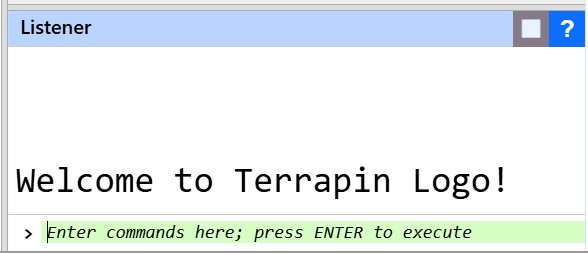 The Listener panel is where you type commands or instructions for Logo to do. Often the results will affect the Graphics panel, but sometimes you’ll see a response in the Listener.