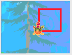 See the thick glass plate? On the back side, you can see a background image, and the turtle has drawn a red square onto the front of the glass. The turtle itself hovers over the glass and the viewport is above all, hiding most of the picture.