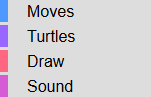 When Logo Blocks first starts up, you see the Beginner set of blocks. Click the word Intermediate or Advanced to get to more commands.