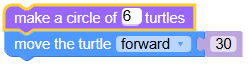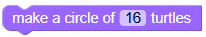 This command lets you arrange many turtles (1–50) facing out around a circle. Use it, for example, like this: