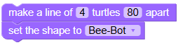 This block puts 10 turtles, spaced 15 steps apart from each other. (You can use any number of turtles from 1 to 50.)