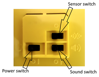 Blue-Bot has three switches underneath, for power, sound, and sensor.